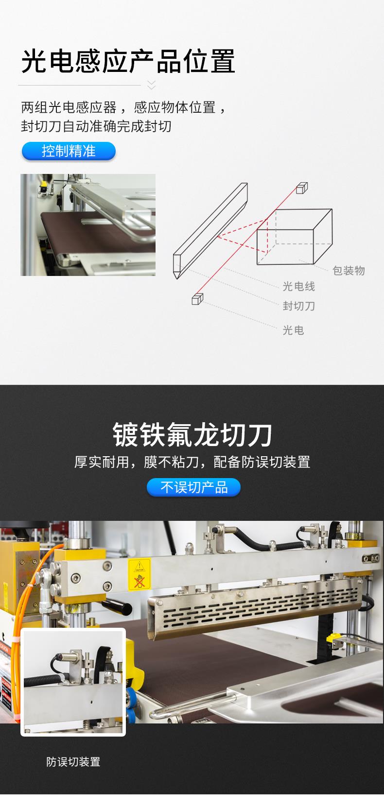 5、 適用于PE、POF等工業(yè)標(biāo)準(zhǔn)熱封膜,尤其適用于POF熱封膜封切包裝;